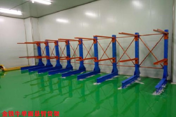 單面式懸臂貨架一般運用在比較特殊的場合,也是單面懸臂貨架分類中的一種運用的比較多的貨架,這個空間會受比較合理的控制就會需要這種單面懸臂貨架.單面單面懸臂貨架比方說在一個比較窄的空間范圍內的話用雙面的單面懸臂貨架的話可以更為靈活運用,這種單面單面懸臂貨架運用同時方便我們叉車的方便的搬運貨物,同時單面的單面懸臂貨架承受重量也是很靈活的,這種靈活程度我們看起來更使運用的更加廣泛,單面單面懸臂貨架承受重量有的時候可以承受1000KG.缺點:就是相對駛入式貨架以及托盤貨架來比較單面懸臂貨架對空間的利用有限.存放的產品相對來說擺放不能太隨性,要求整齊,歸類應該清楚.